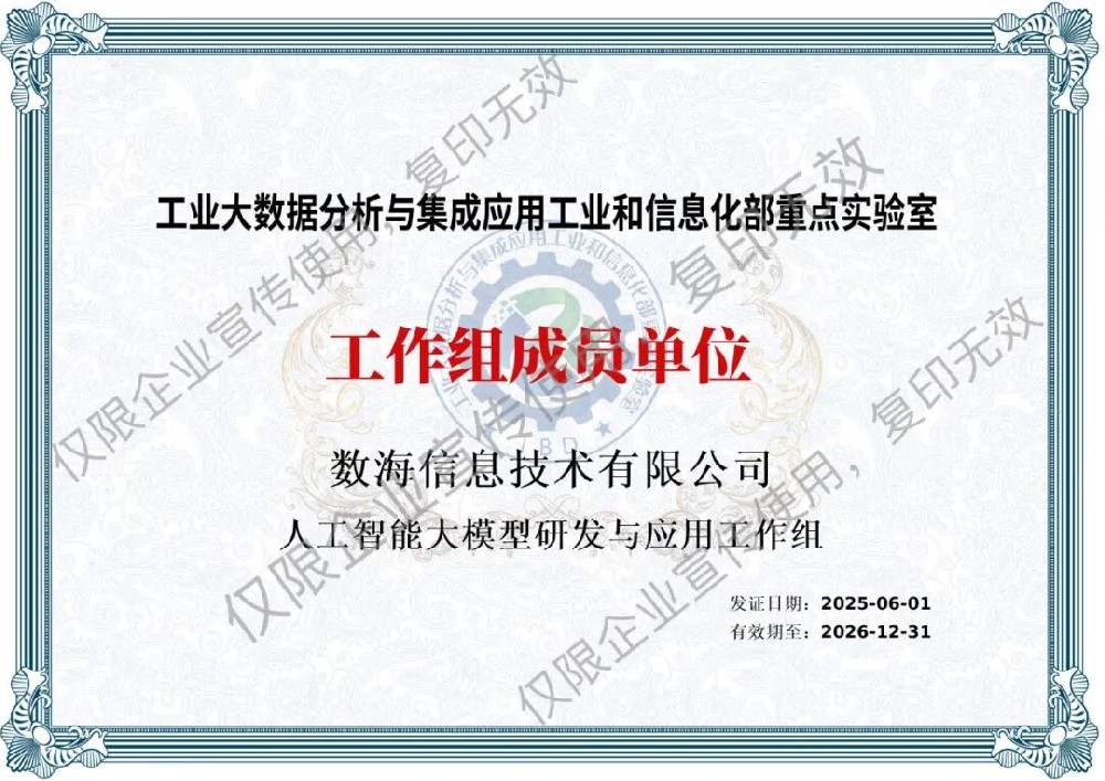 數(shù)海信息集團入選工信部重點實驗室人工智能大模型研發(fā)與應(yīng)用工作組,助力工業(yè)大數(shù)據(jù)創(chuàng)新與應(yīng)用??